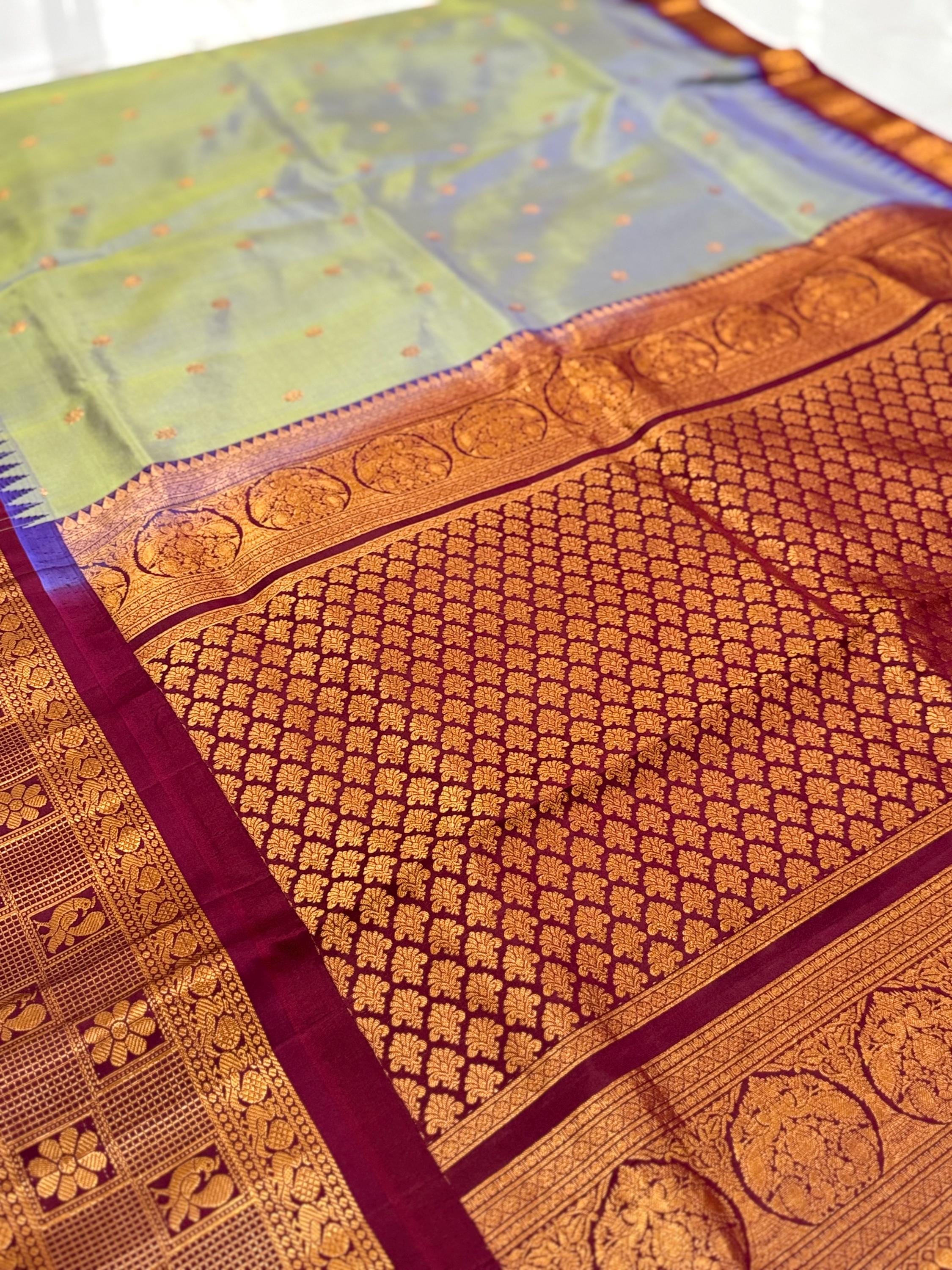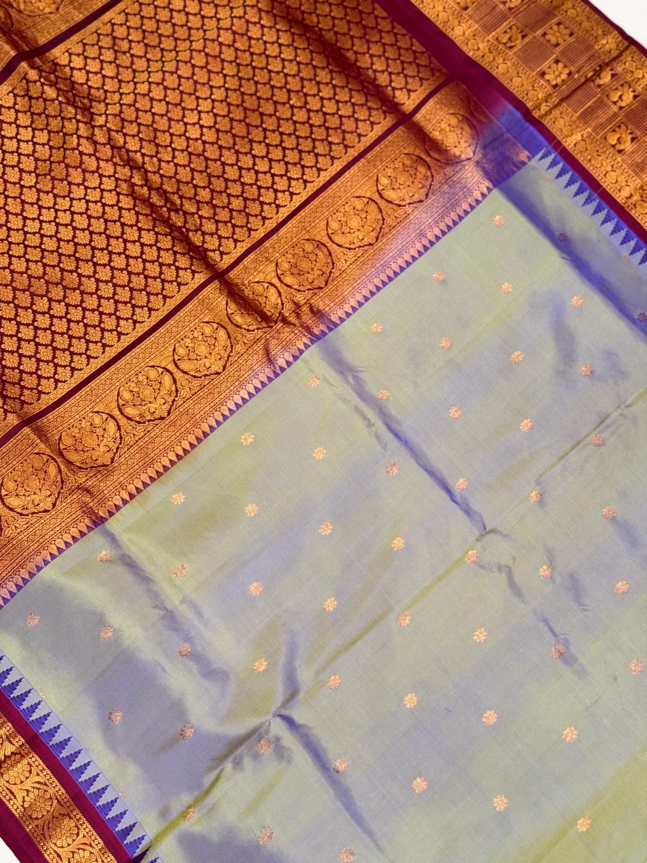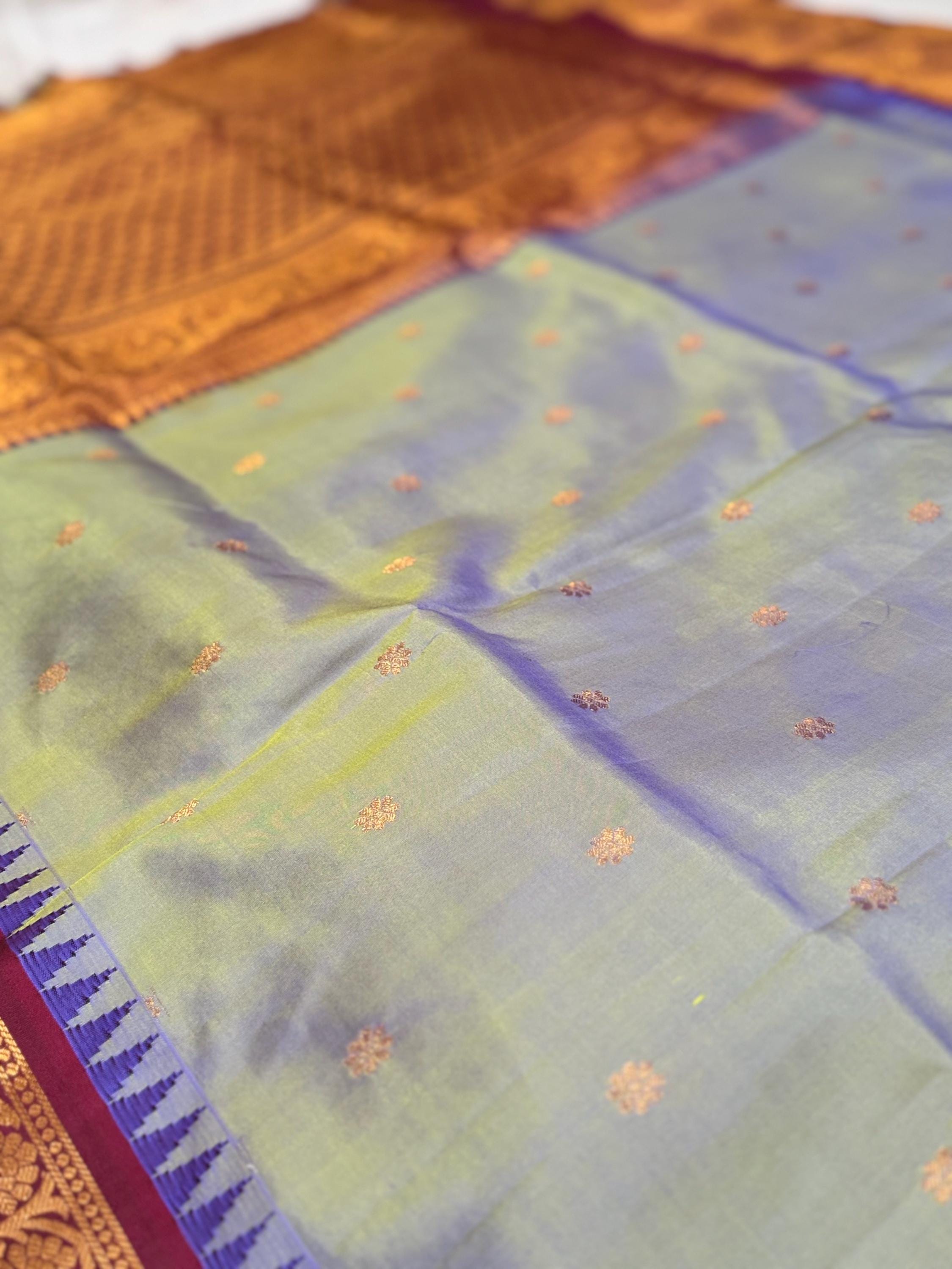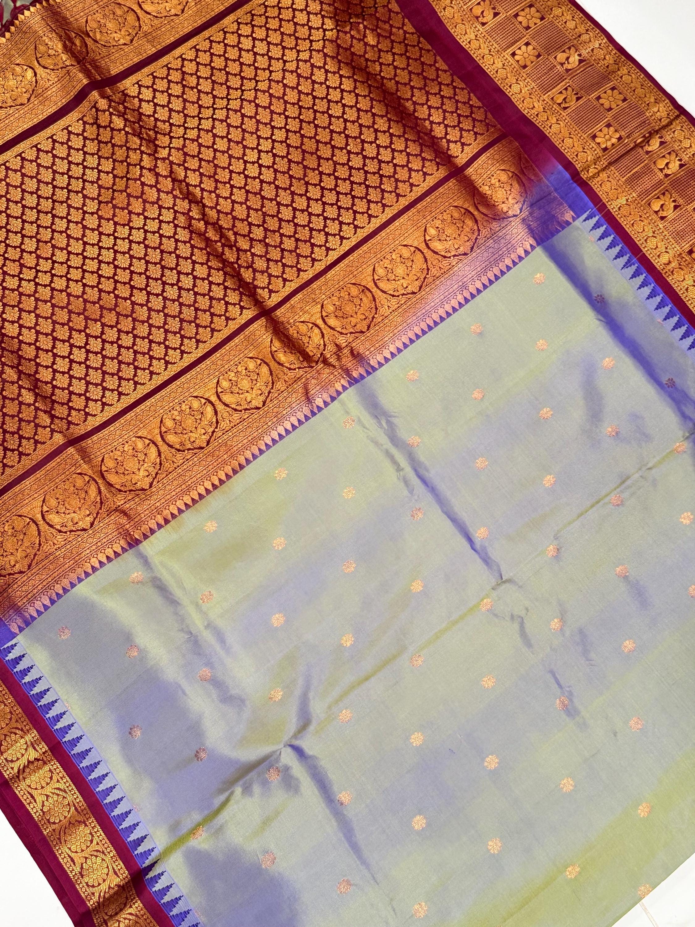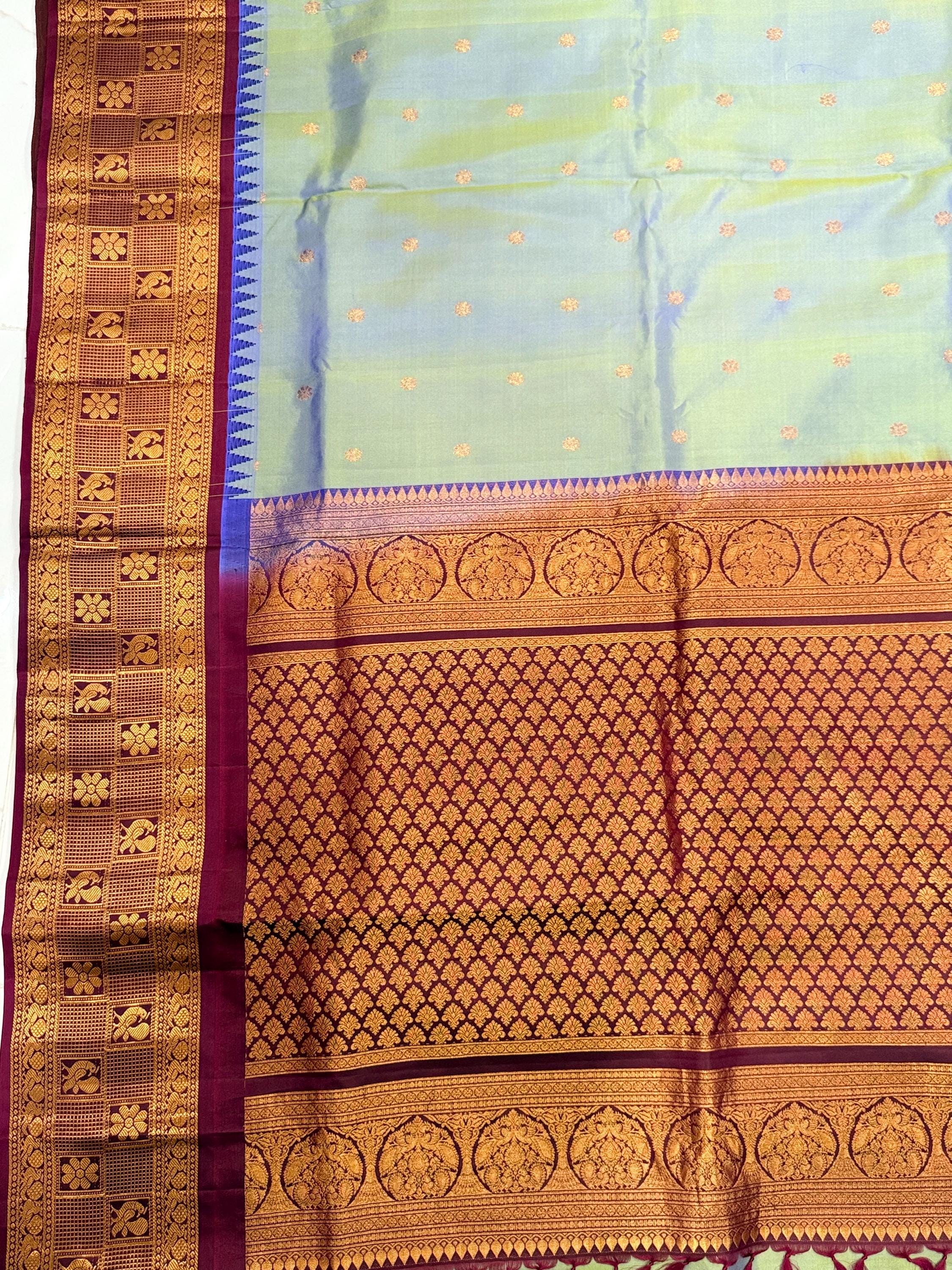 Type - Pure silk Handloom Gadhwal Saree with Kanjivaram border weaved in Telangana .