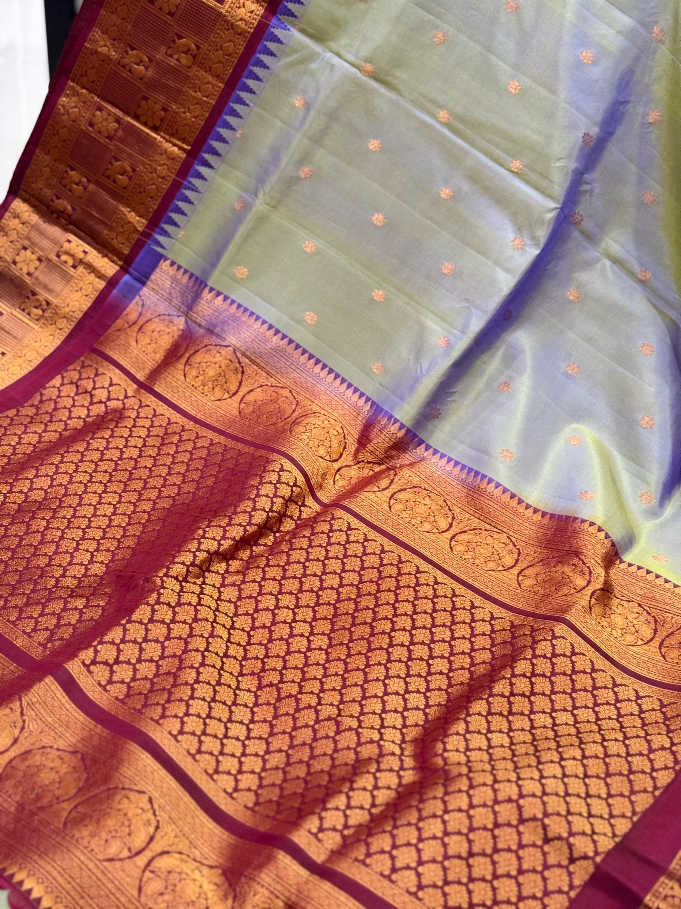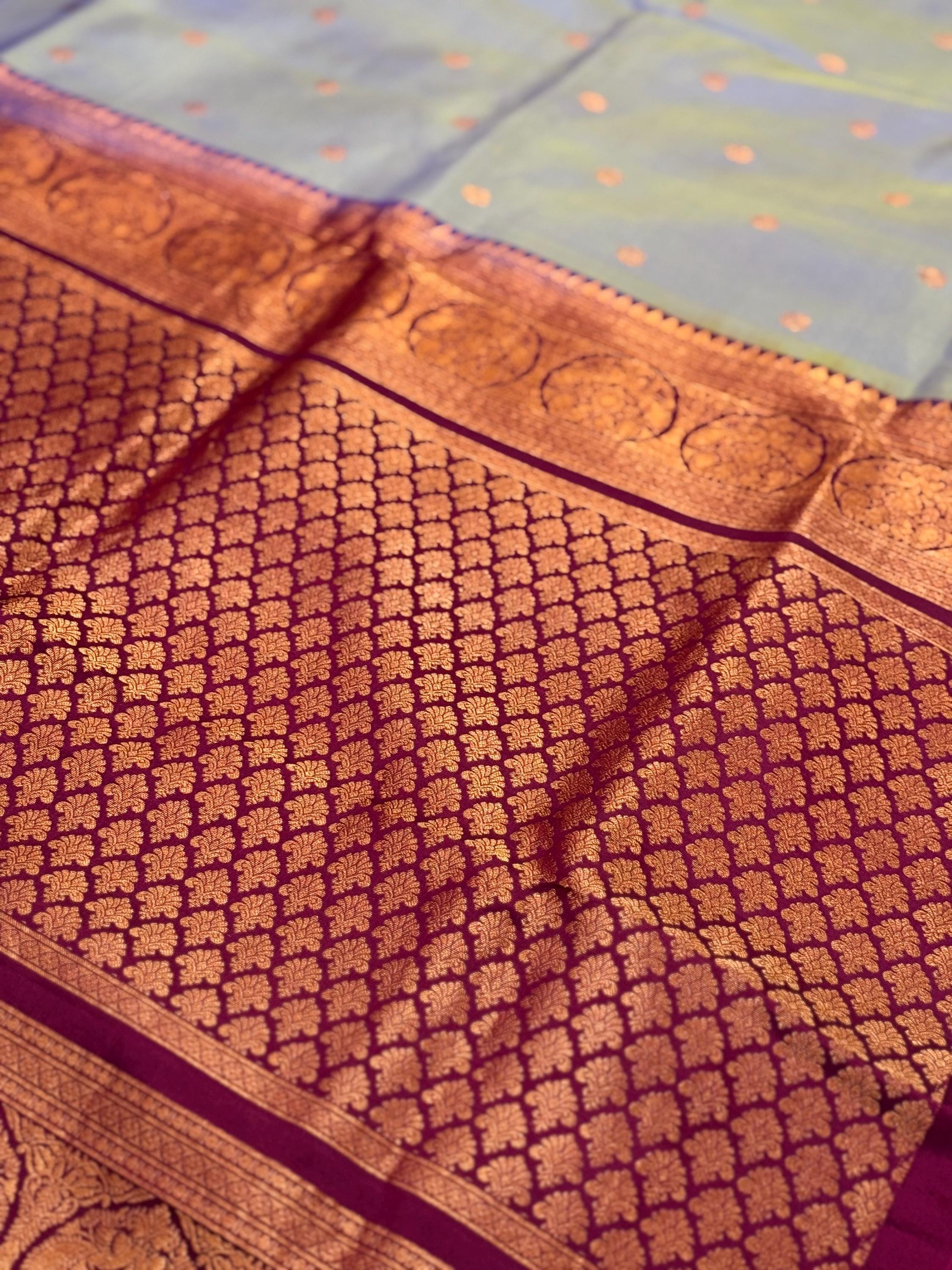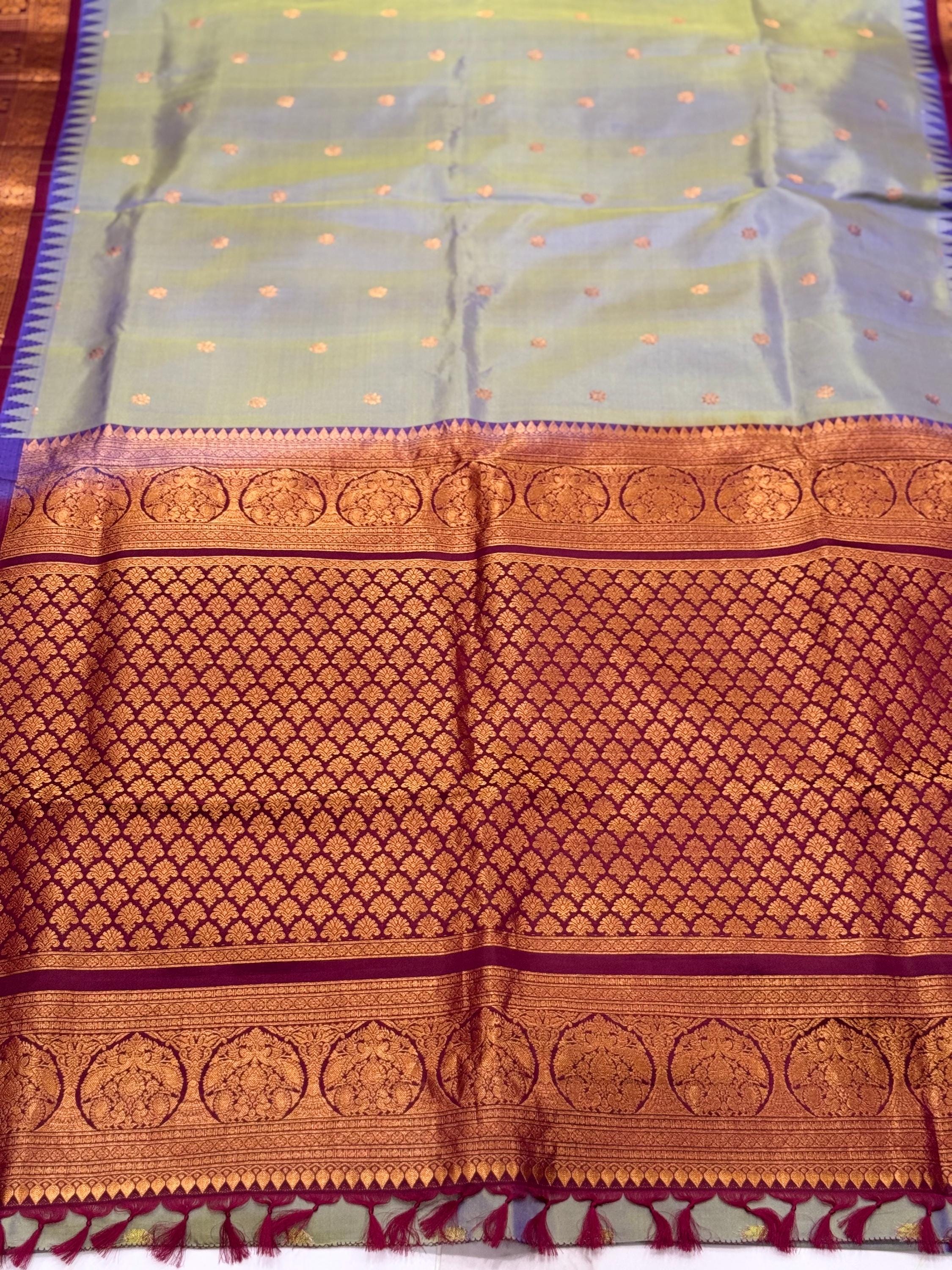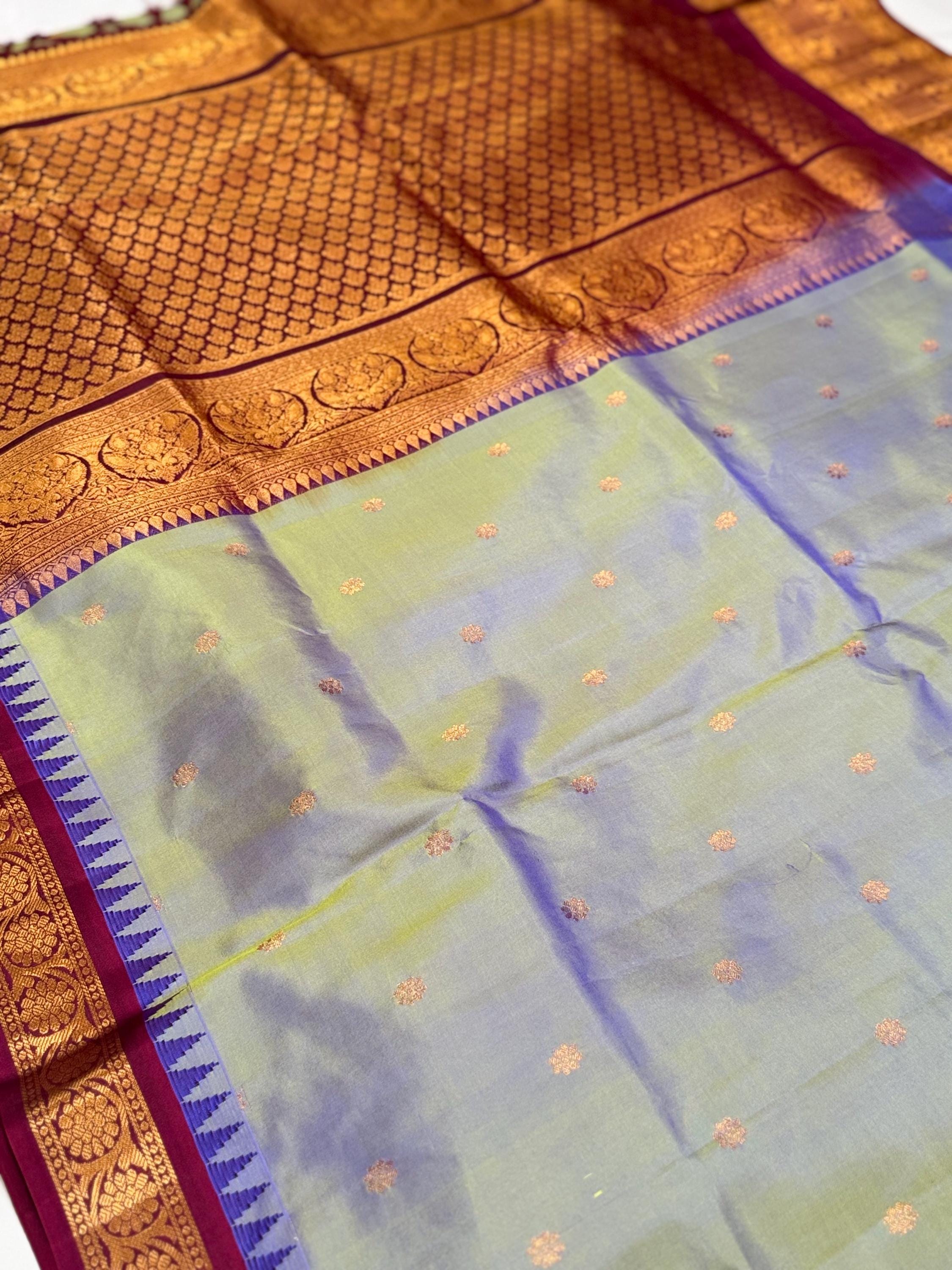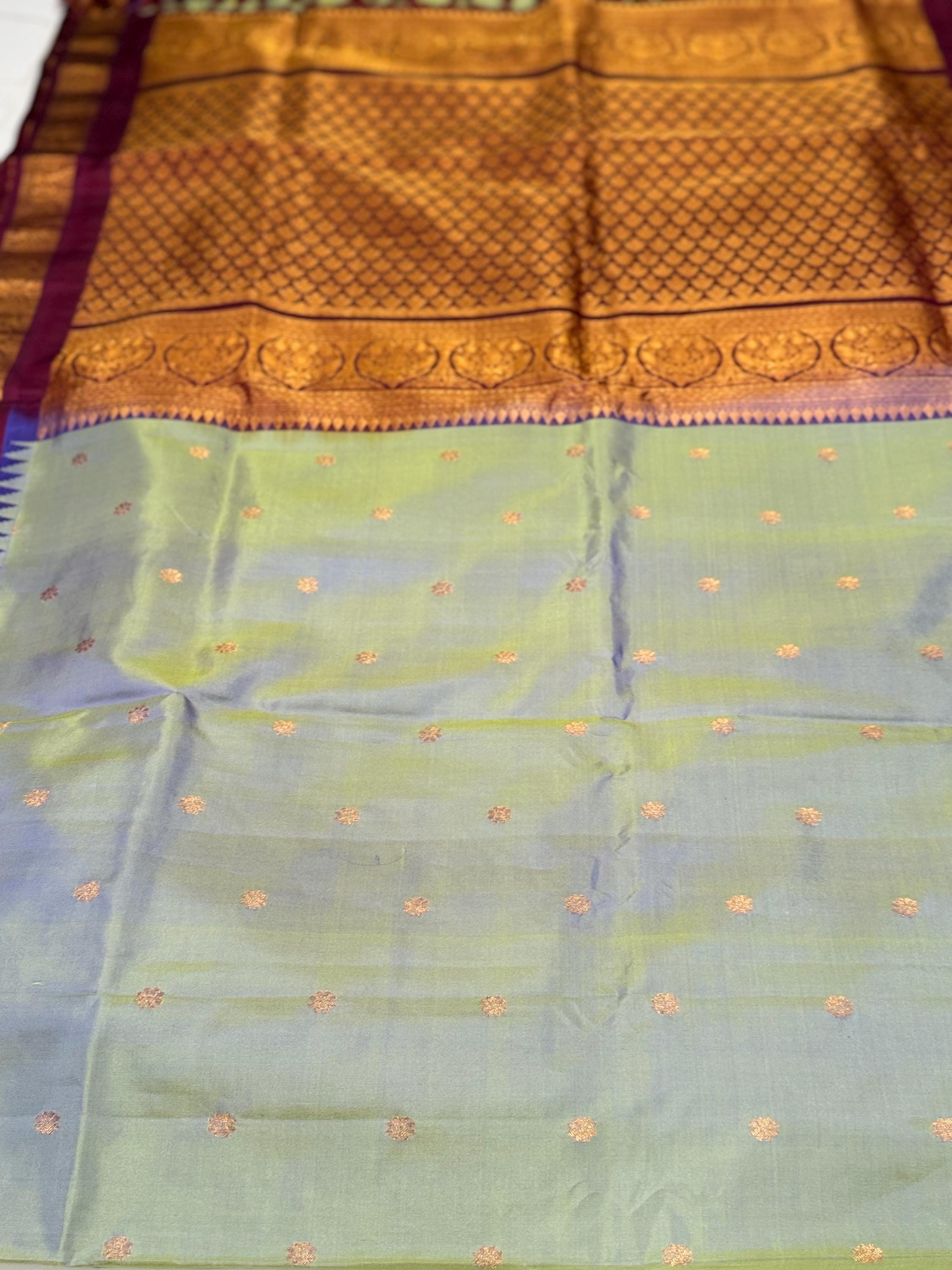 Type - Pure silk Handloom Gadhwal Saree with Kanjivaram border weaved in Telangana .