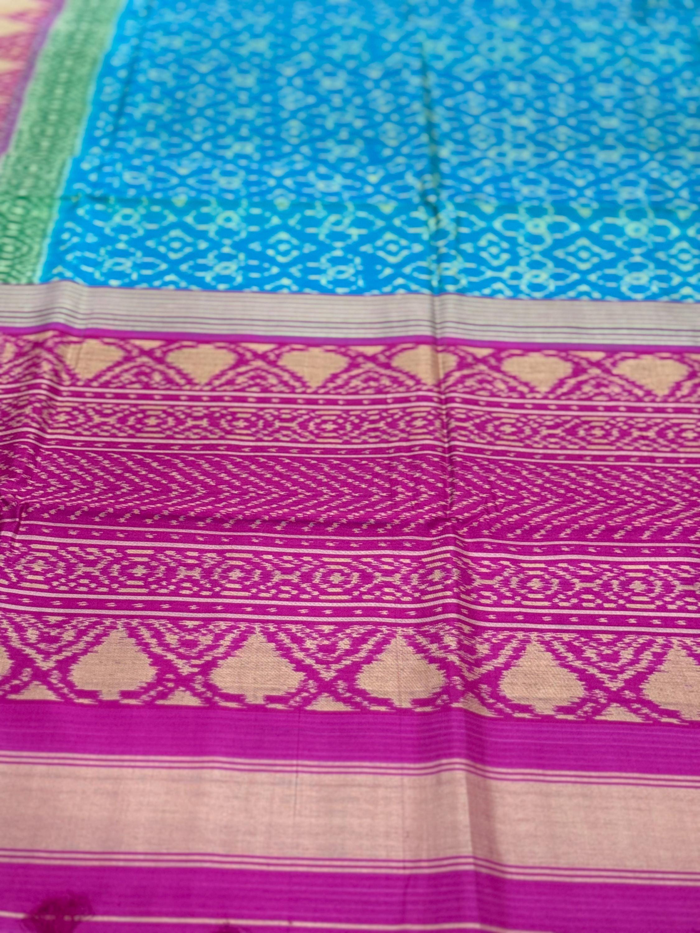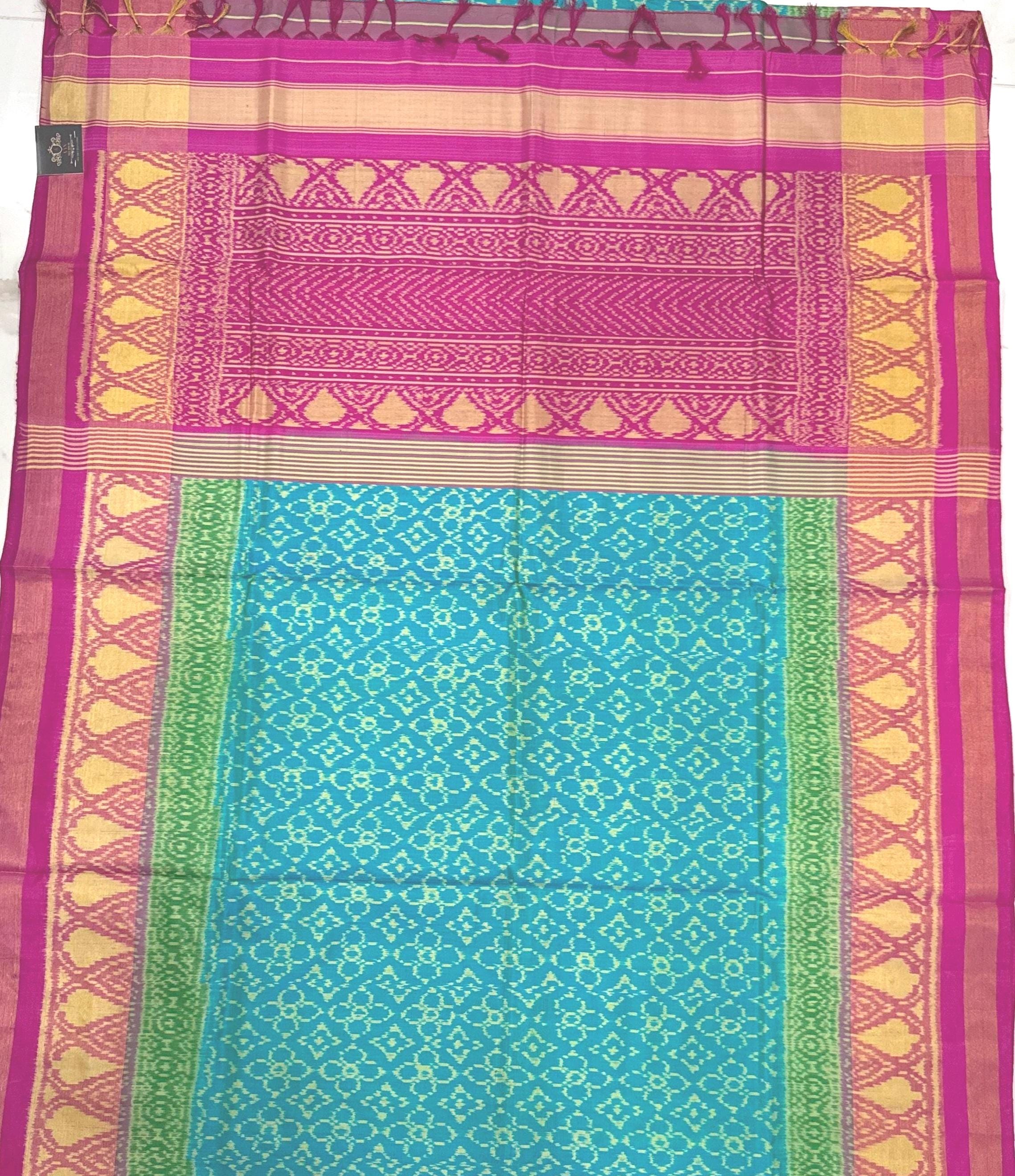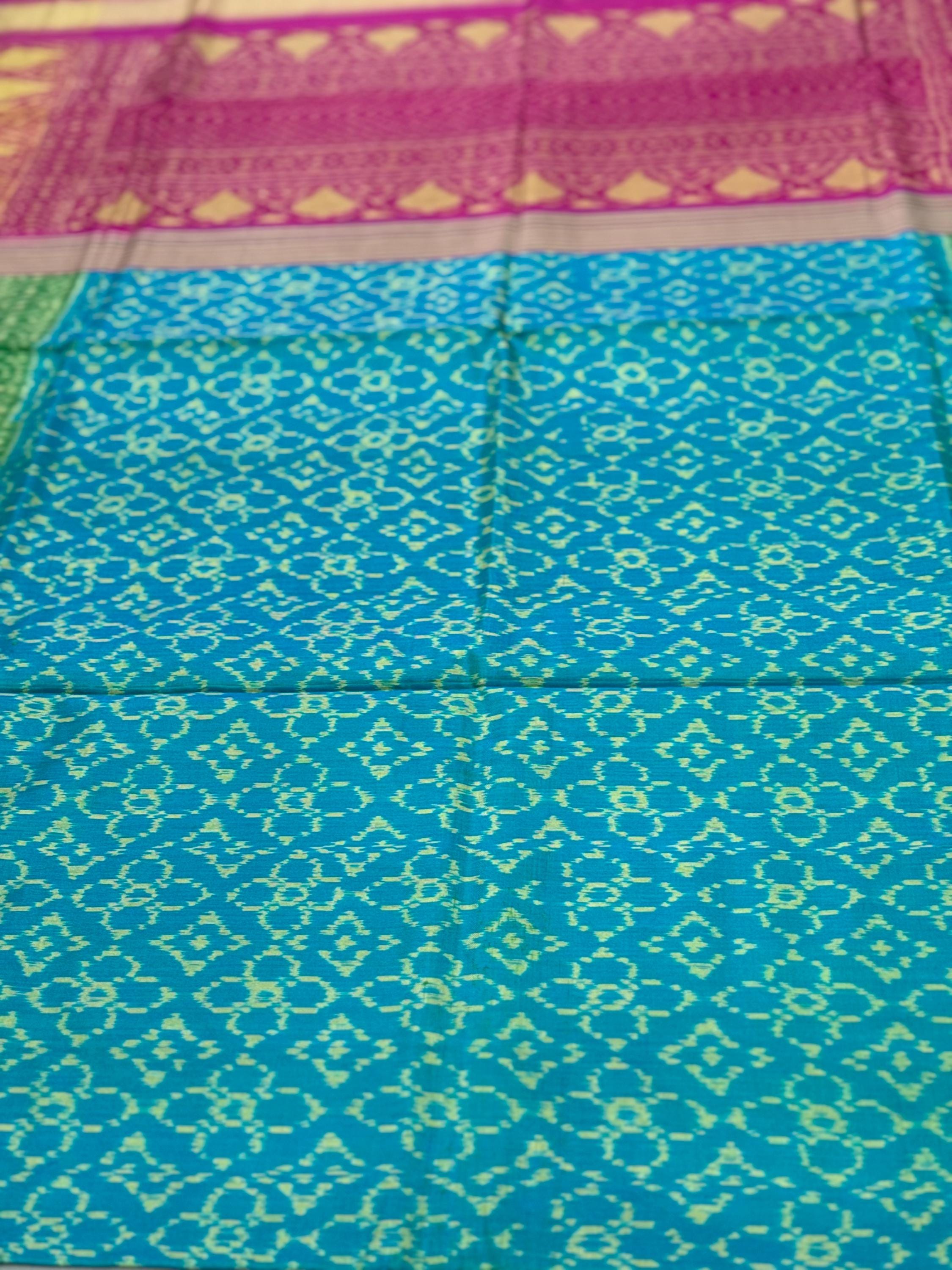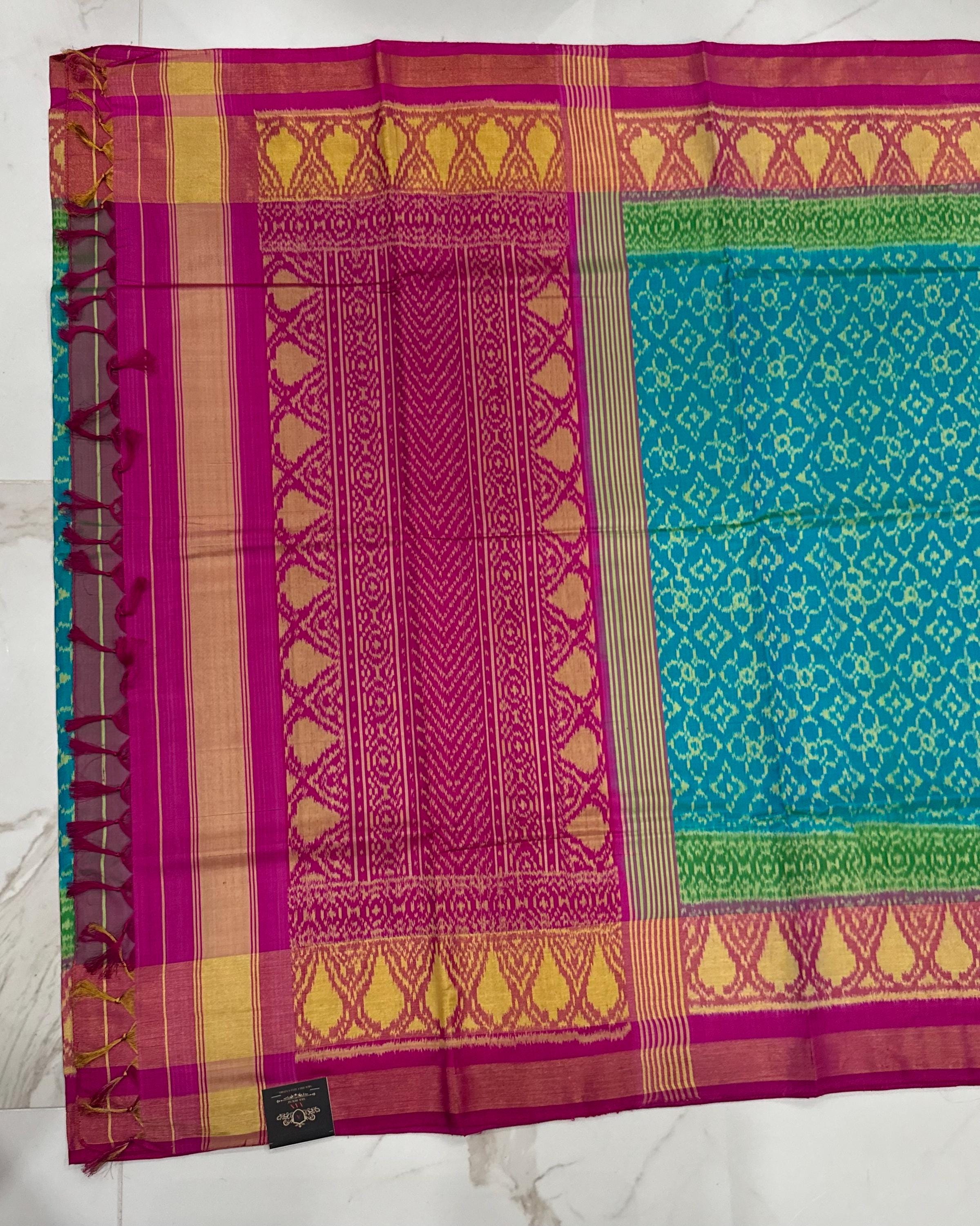 Handloom Rajkot Patol silk saree with pure silk weaving sareepaired with running silk blouse l Firozi blue/Magenta pink