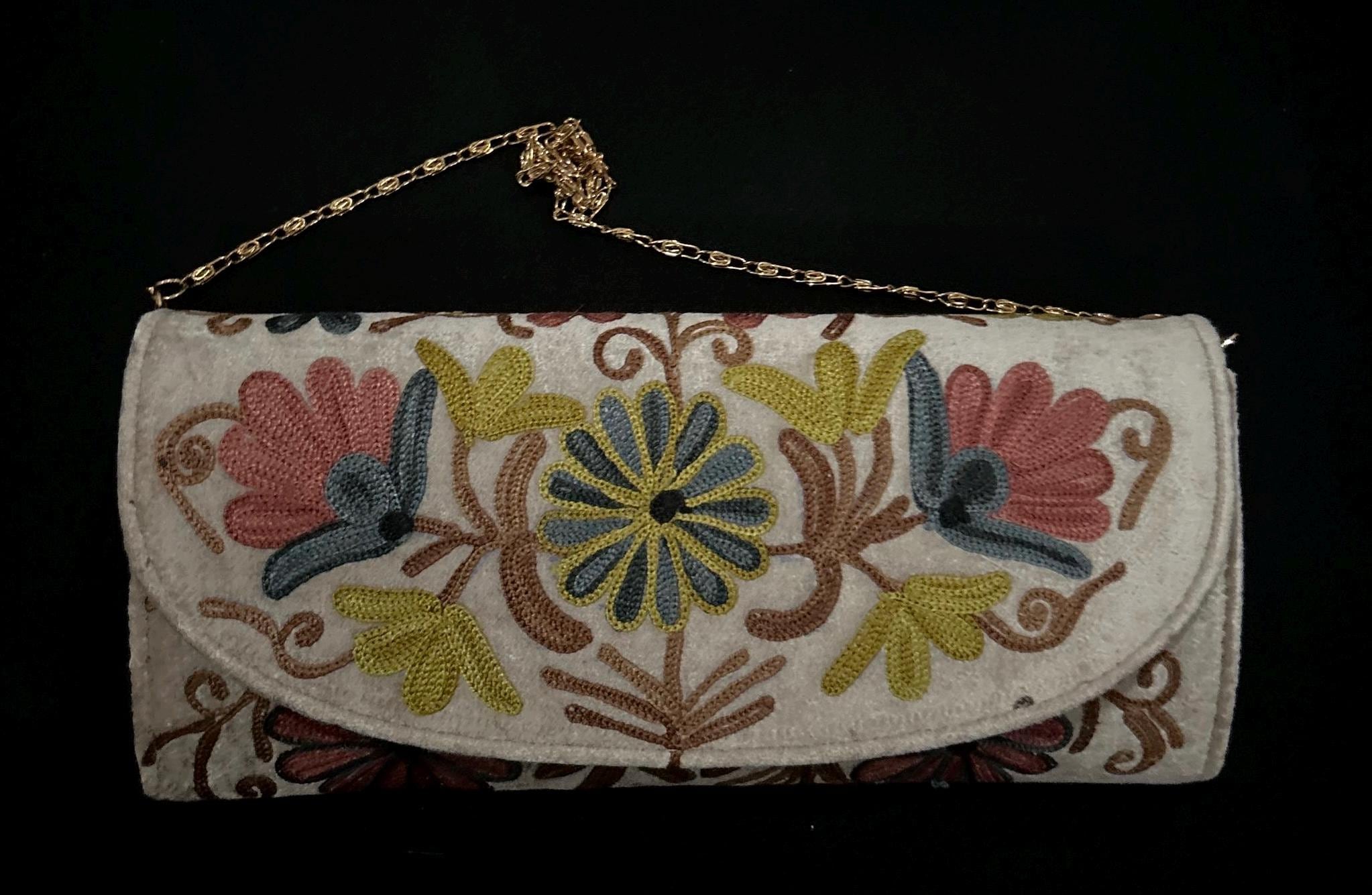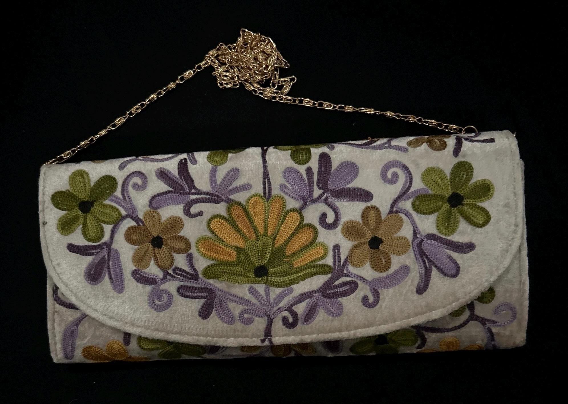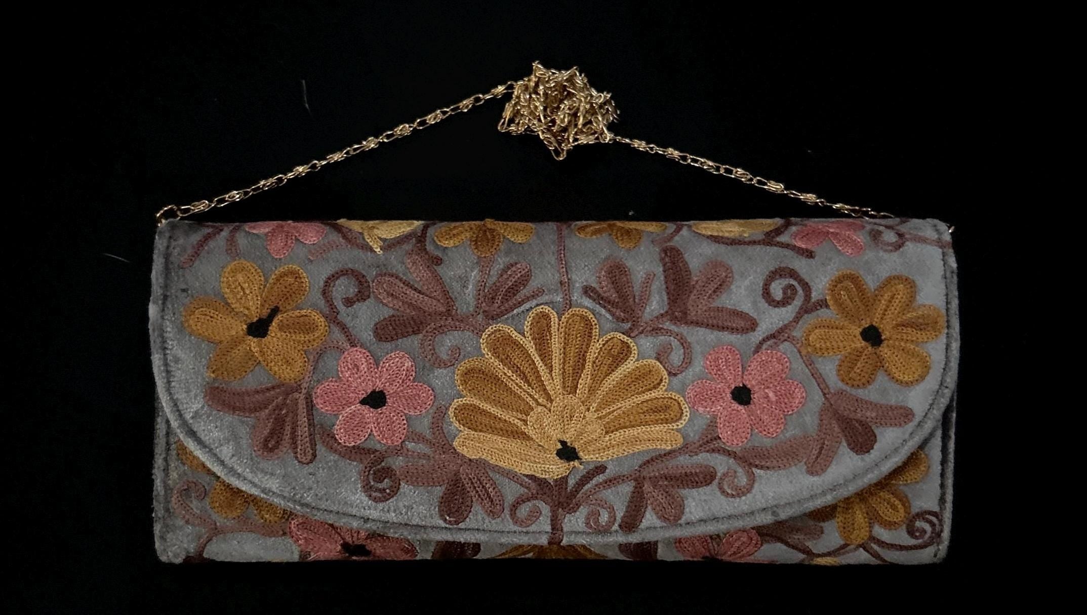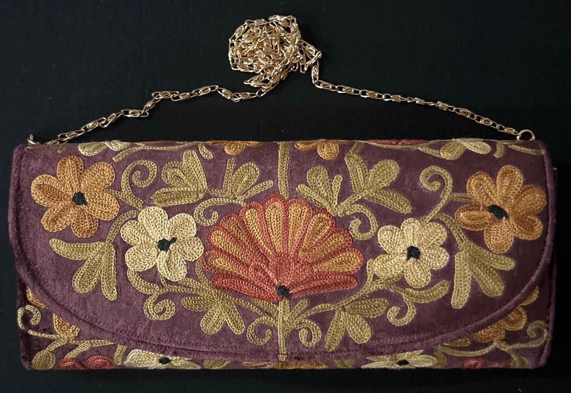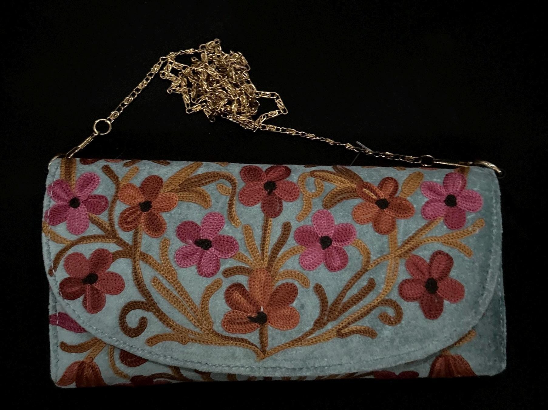 Kashmiri Aari work | Suede | Velvet Designer Clutches | Handmade | Aari Work | Flower Embroidery purse Gift
