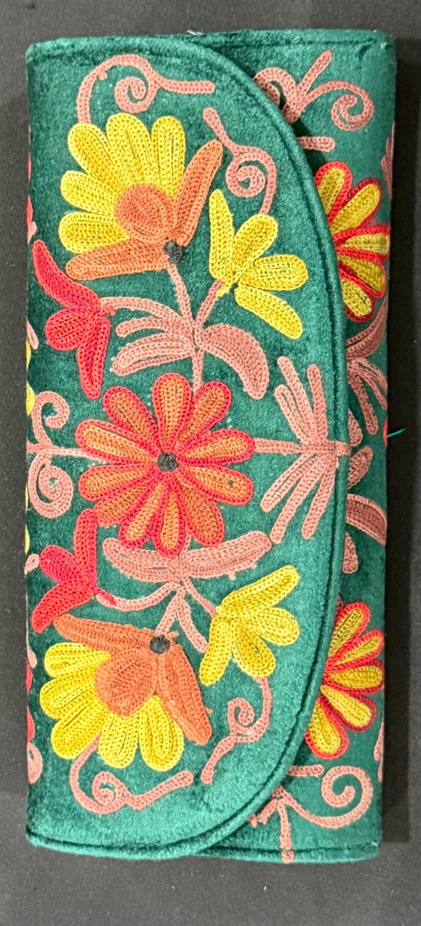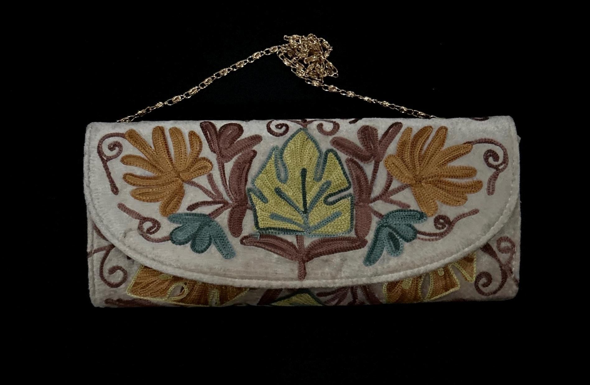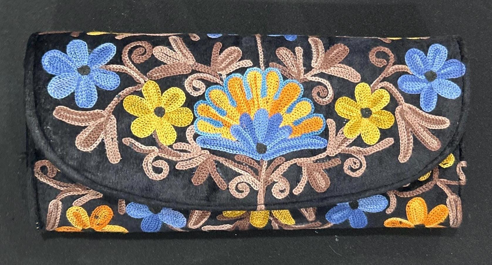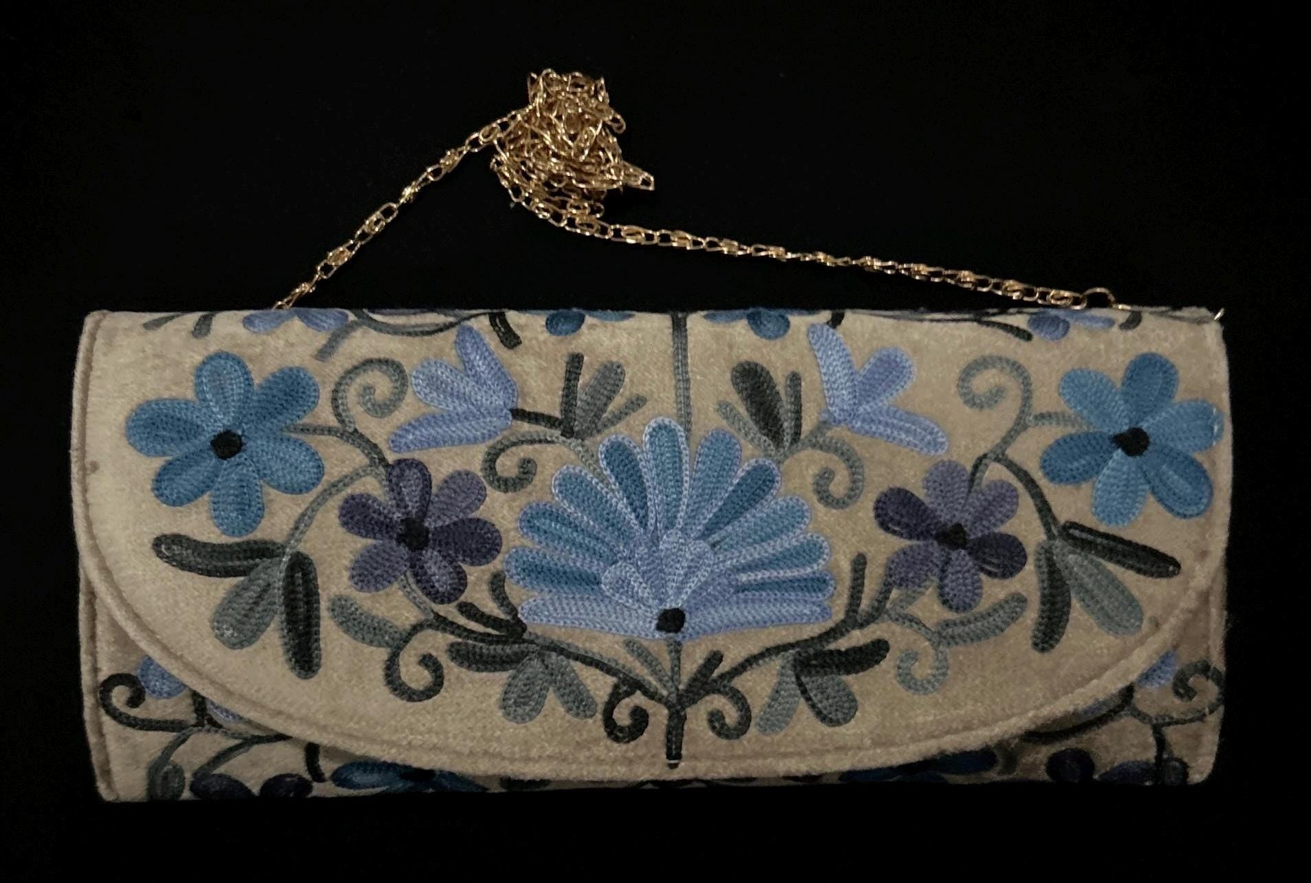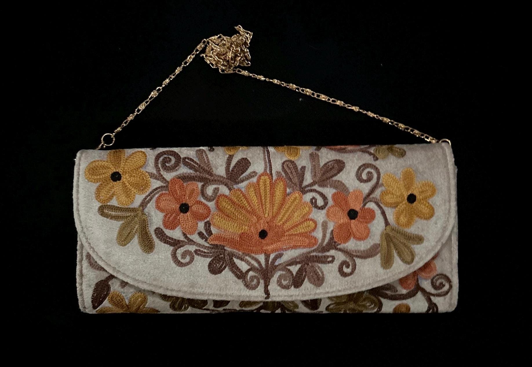Kashmiri Aari work | Suede | Velvet Designer Clutches | Handmade | Aari Work | Flower Embroidery purse Gift