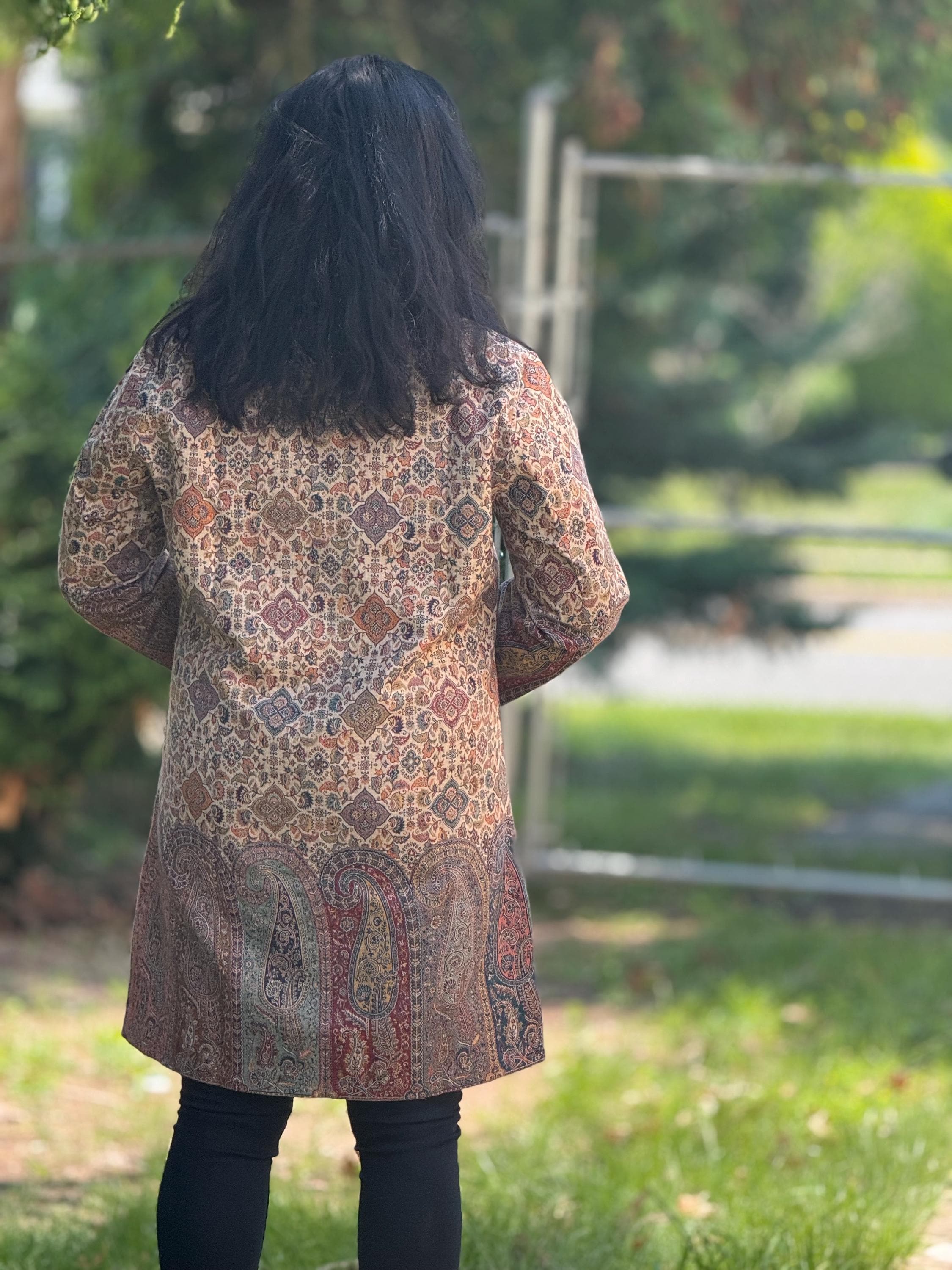 Luxury Kani/Jamawar Woolen Jacket | woven Kashmir Artwear | Statement fashion wear | Kashmir Winter Dresses|knee length| size 44,46,48,50