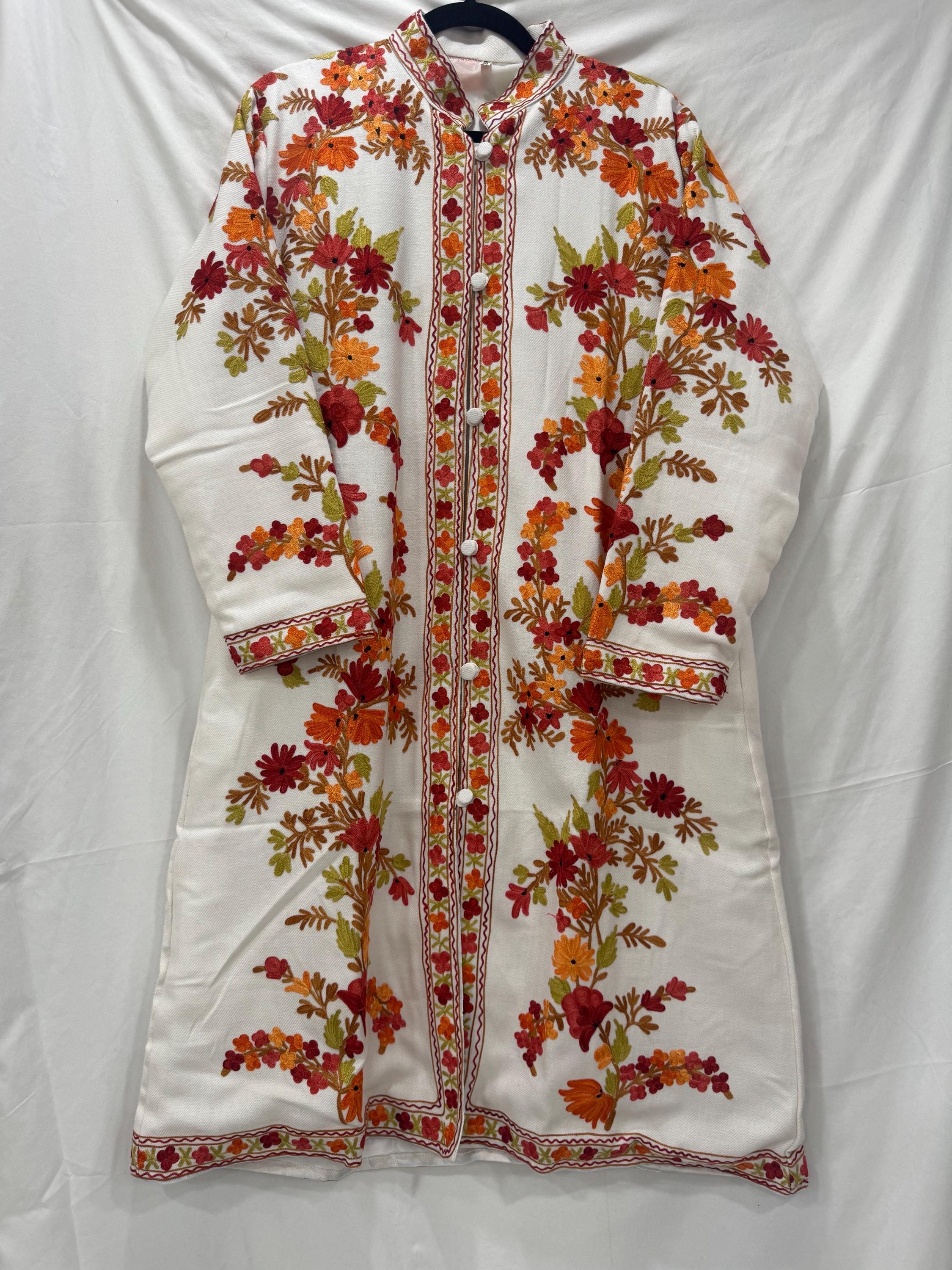 Luxury Kani/Jamawar Woolen Jacket with Jari | woven Kashmir Artwear | Statement fashion wear | Kashmir Winter Dresses|knee length| size 46