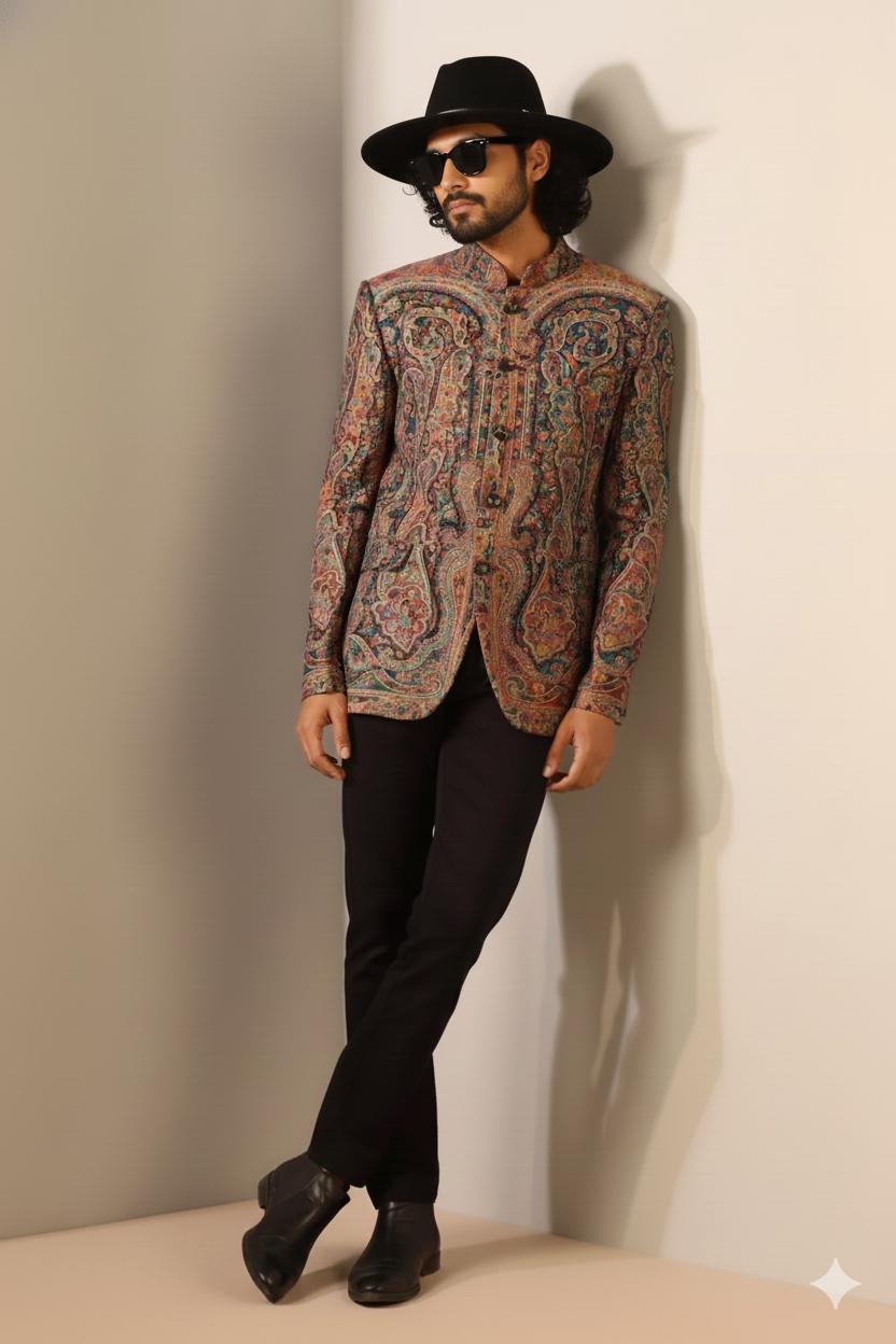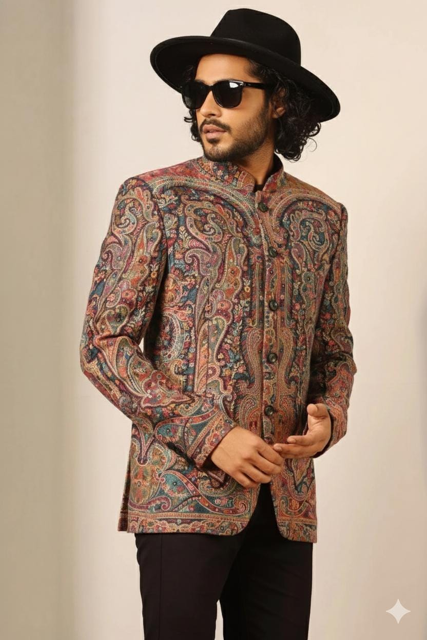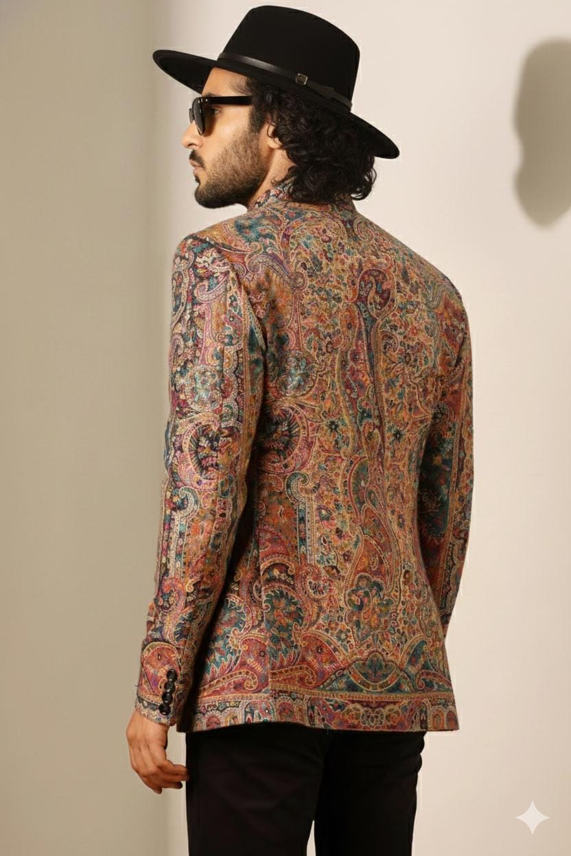 Mens Kani Jamawar Jamdani Jacket| Kani Woven Paisley | Mandarin Collar | Size 40,42,44,48