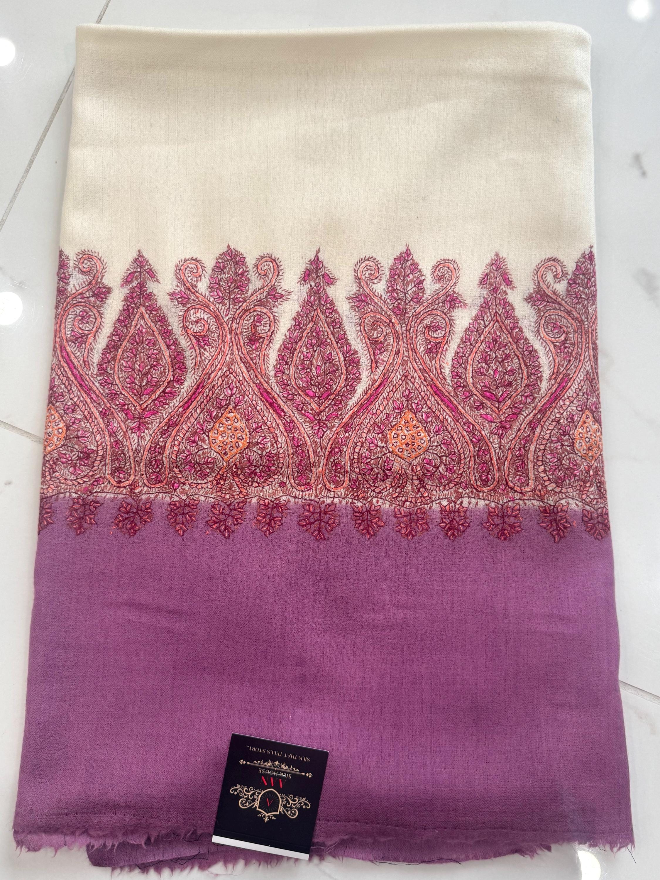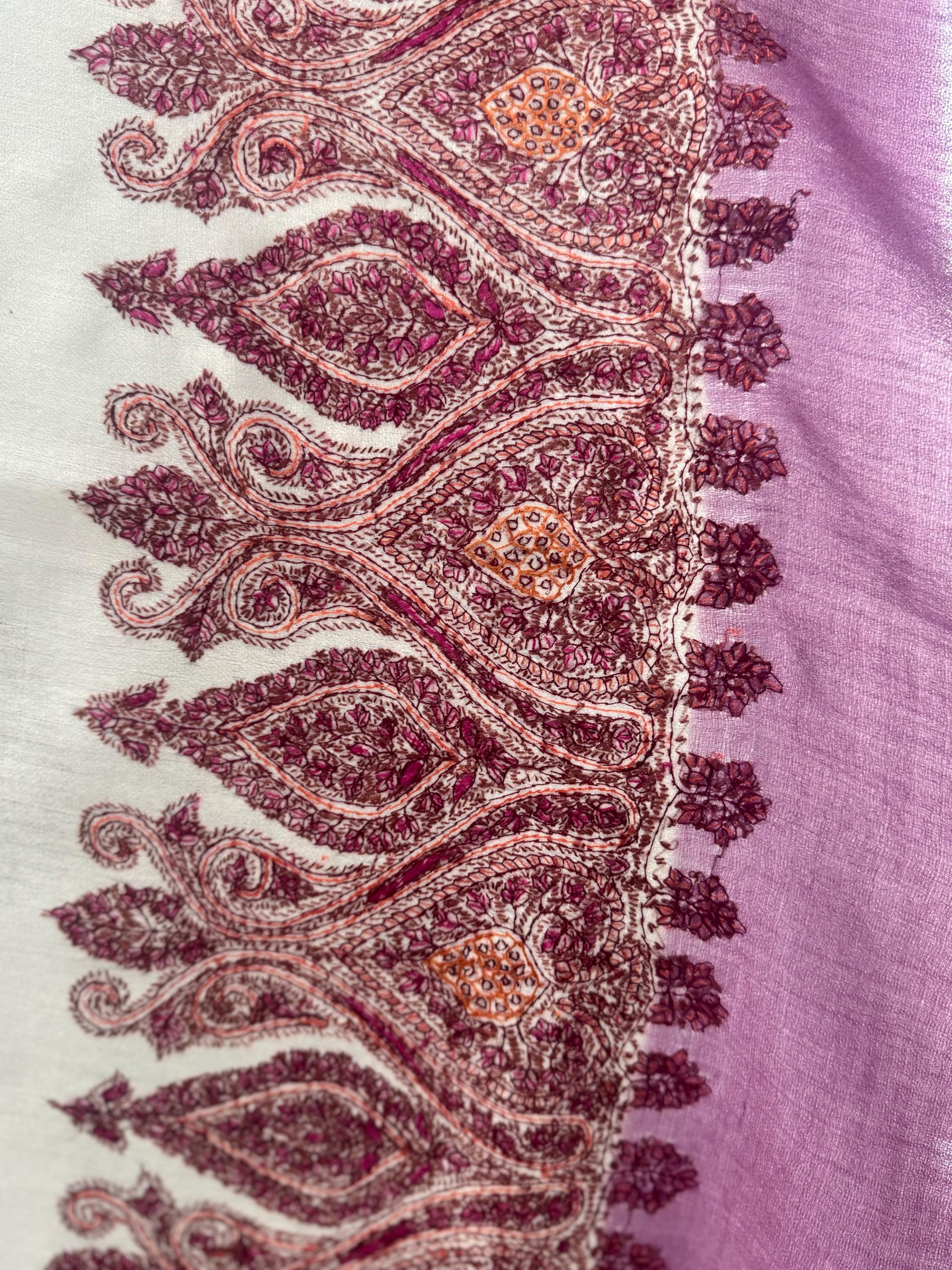 Exclusive and extraordinary hand embroidery. Indulge in the luxurious feel of this shawl, as it delicately caresses your skin with its lightweight and breathable texture. The Sozni embroidery's fine details showcase the dedication and expertise of the artisans, making each shawl a unique and cherished