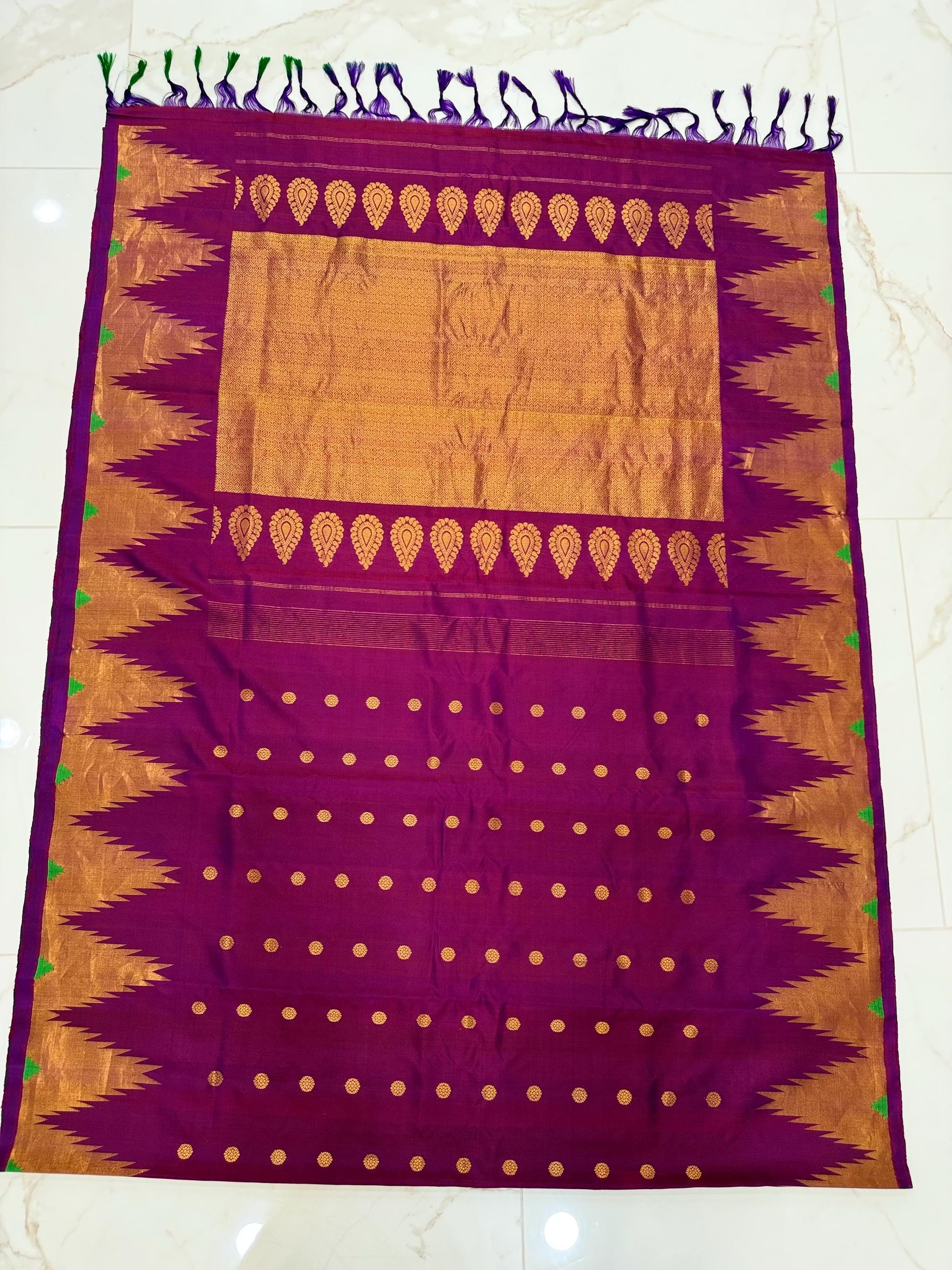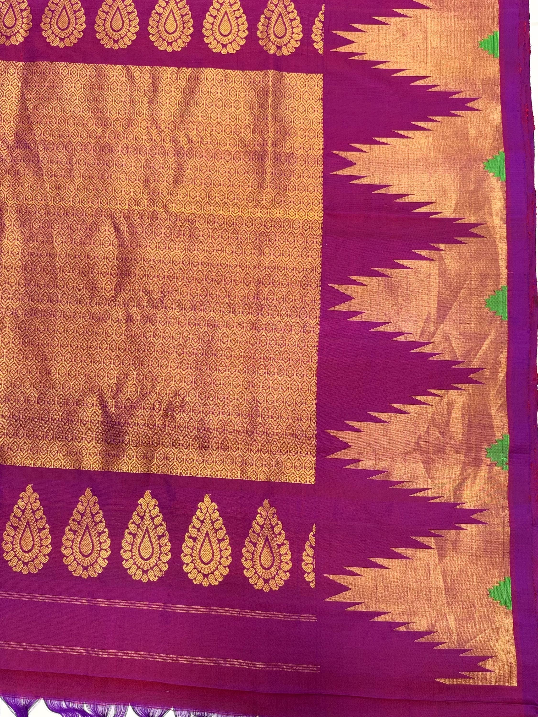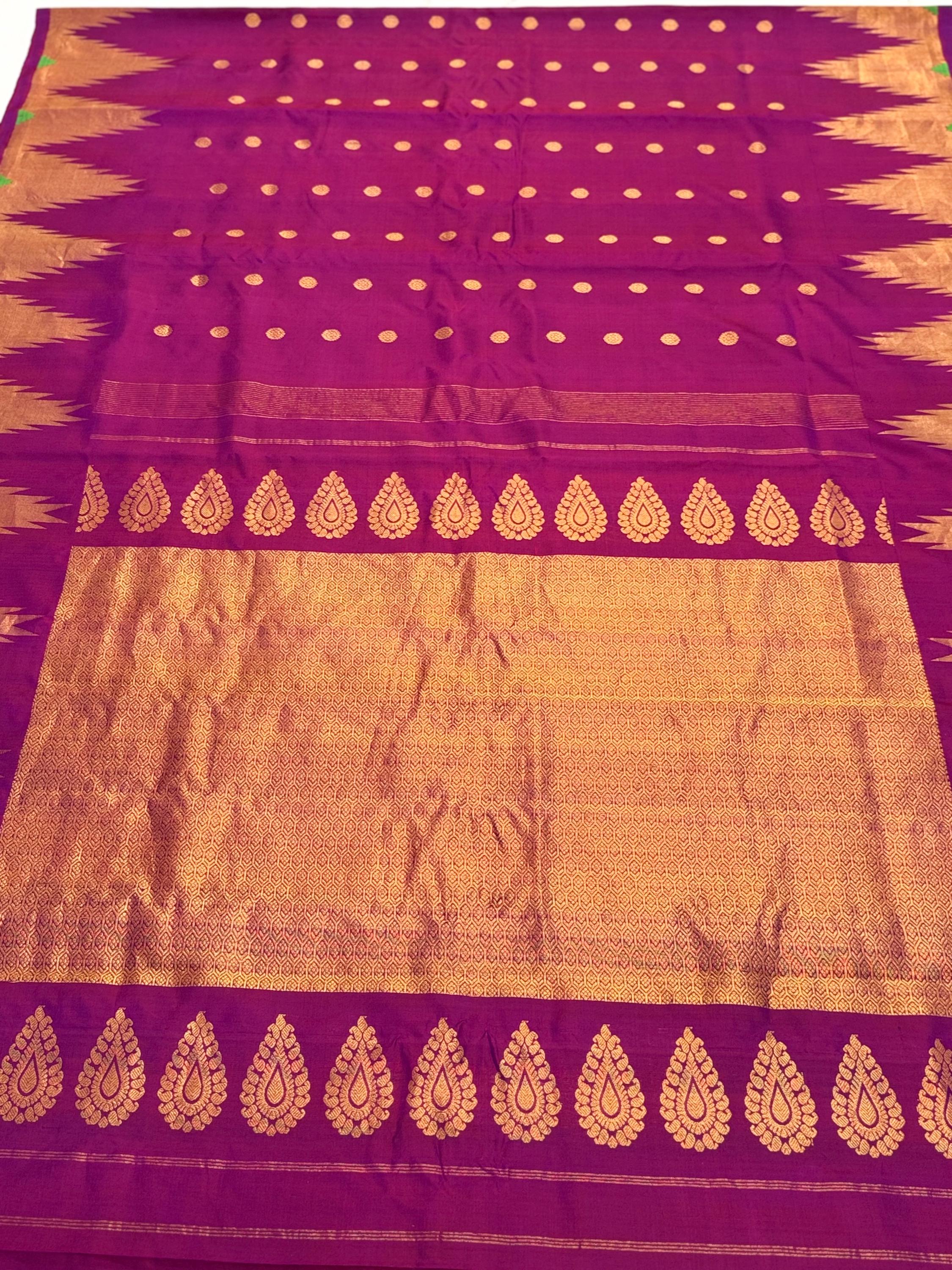 Gadwal 100% handwoven Pure Silk saree in Magenta color with Pattu Temple border - Silk mark Certified from Exclusive collection of Aan Silk House