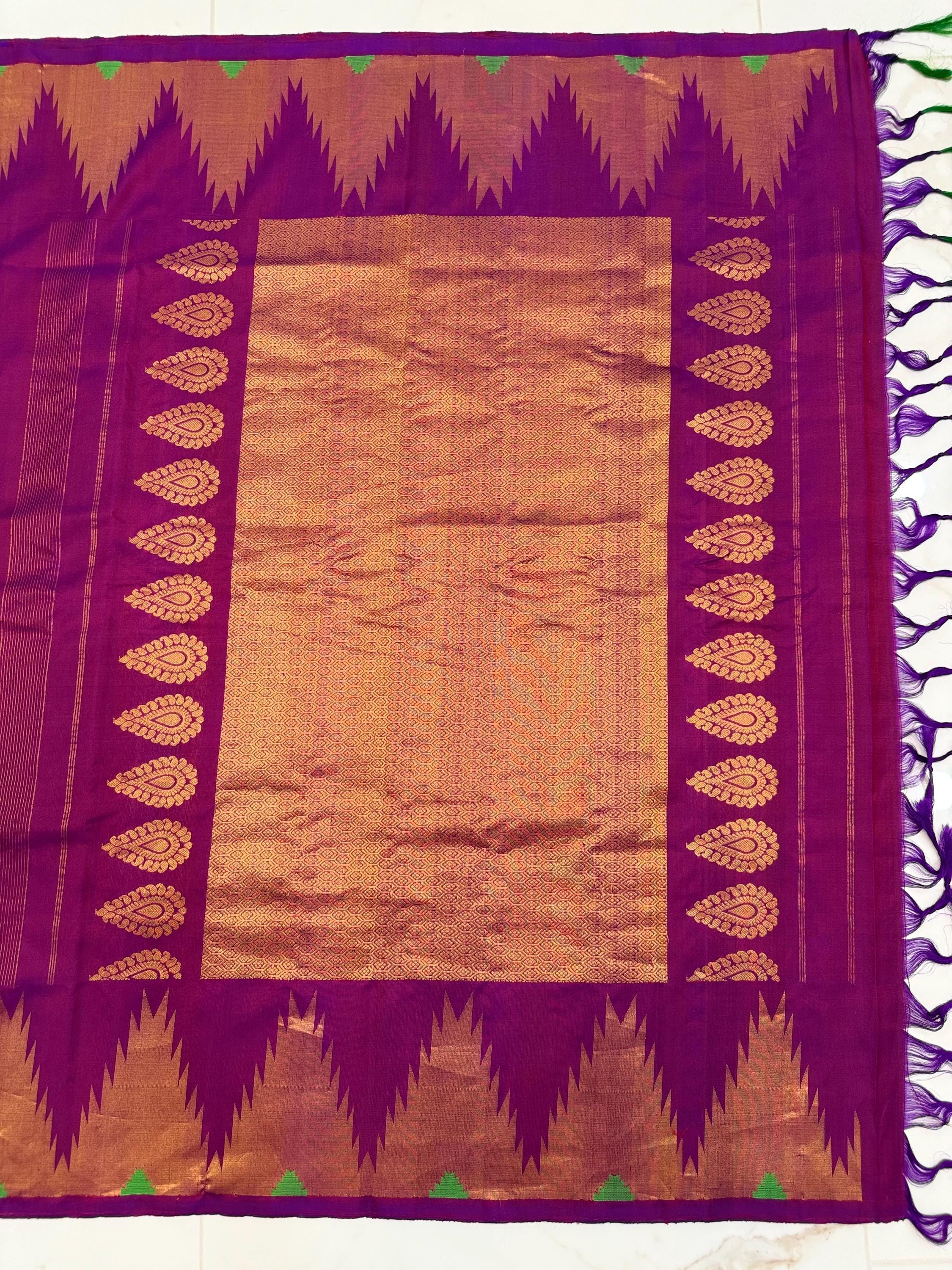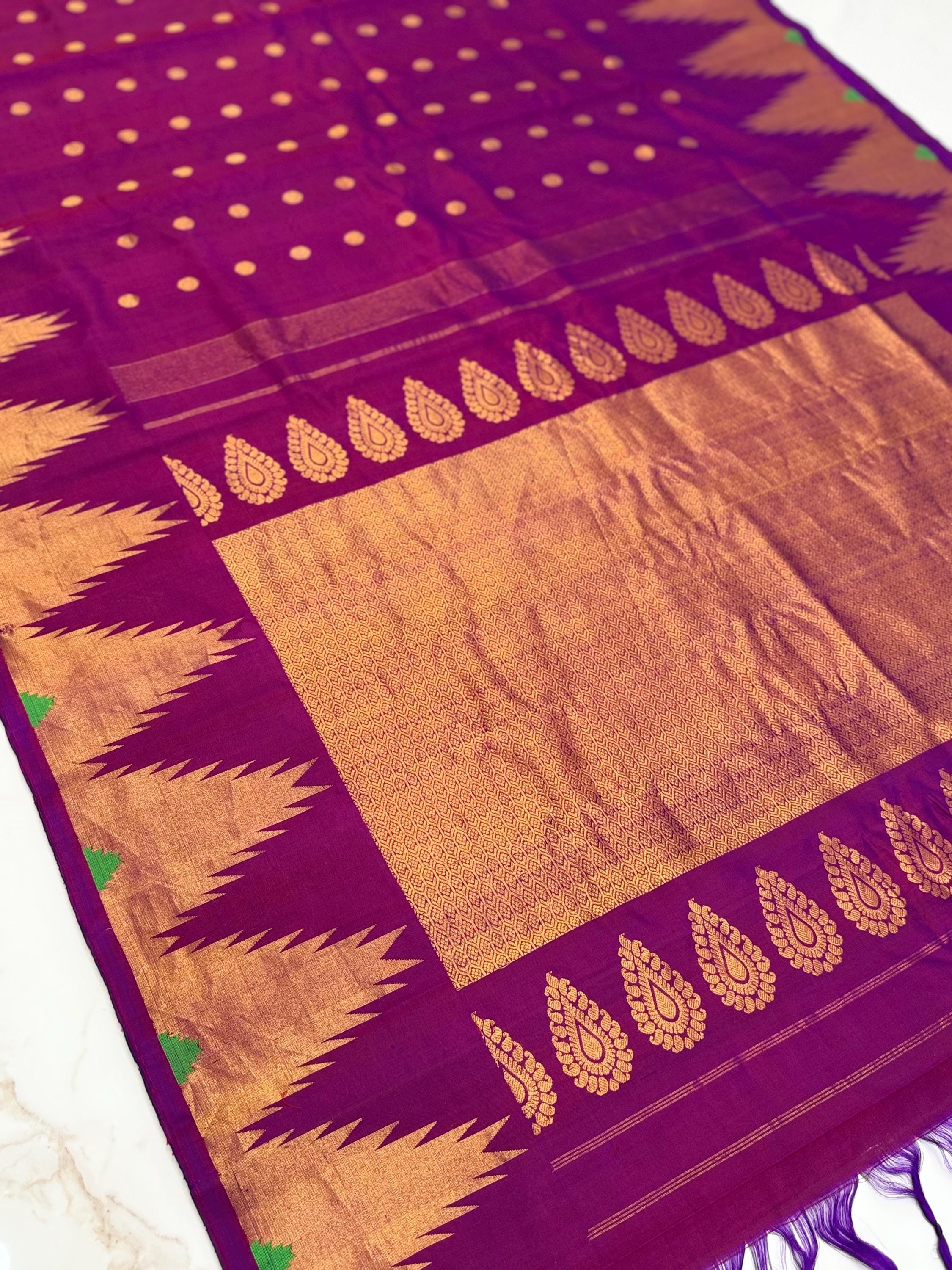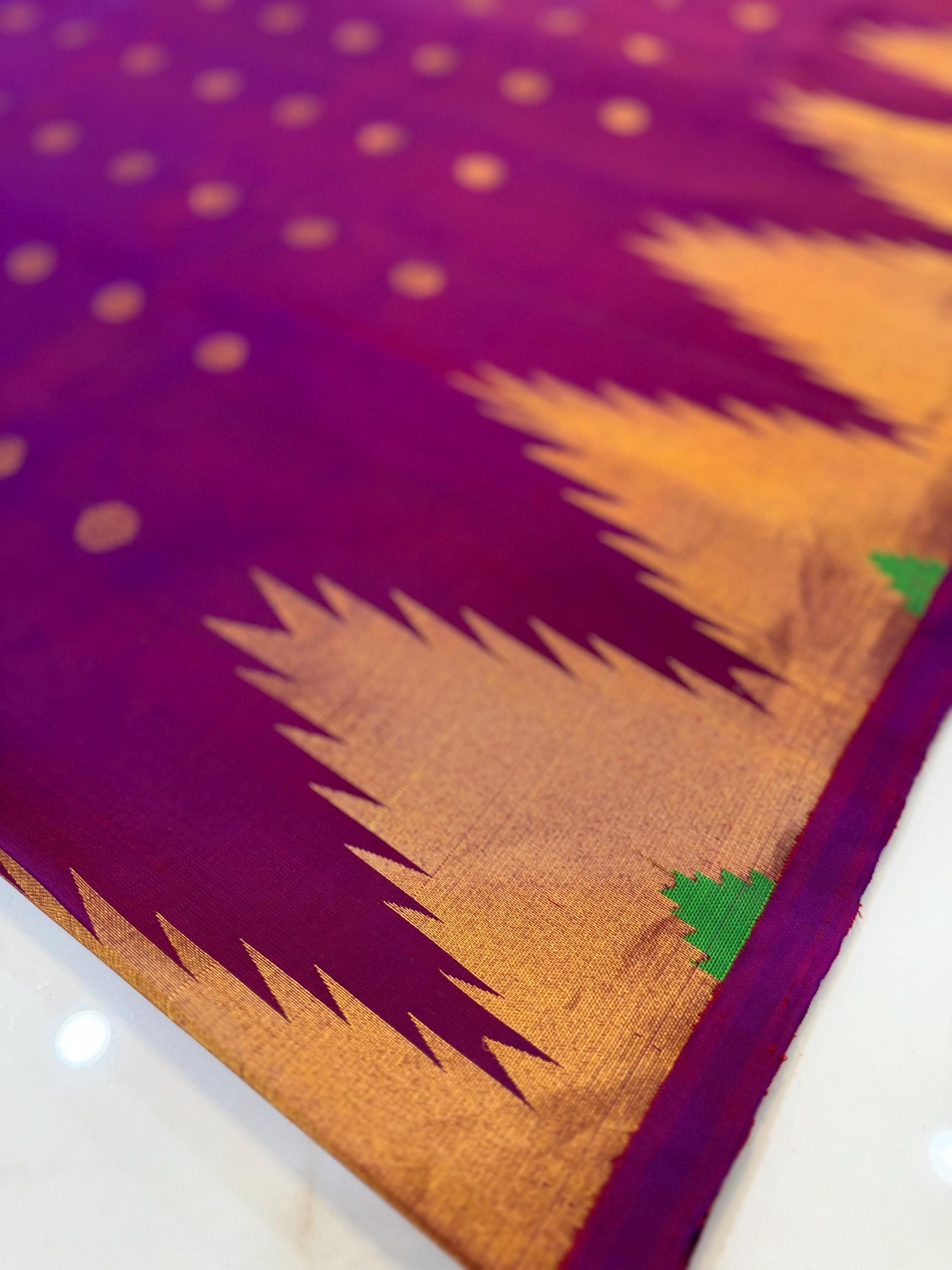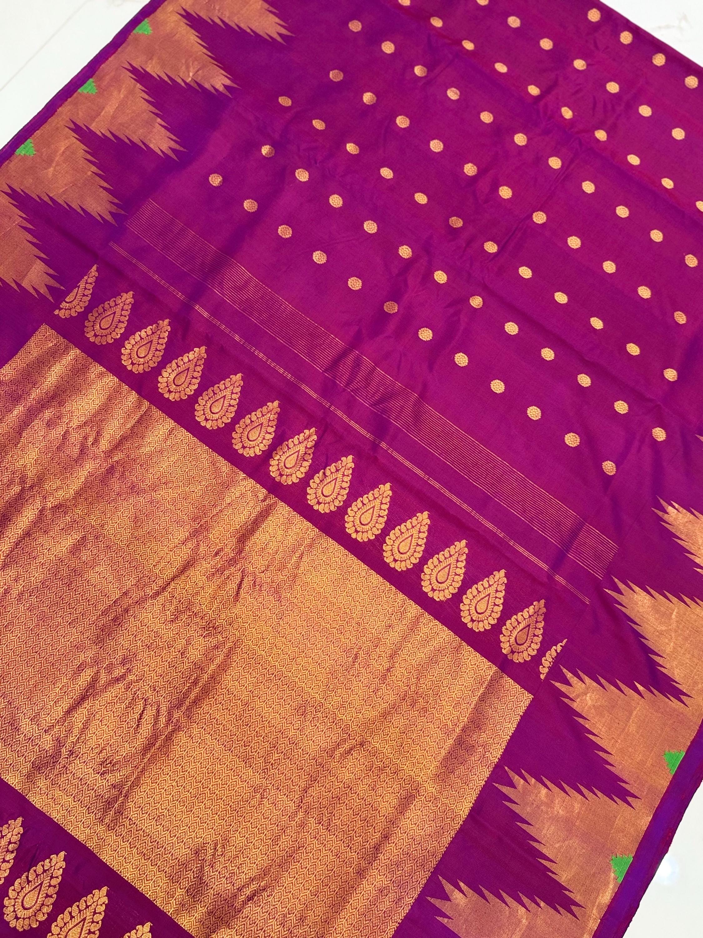 Gadwal 100% handwoven Pure Silk saree in Magenta color with Pattu Temple border - Silk mark Certified from Exclusive collection of Aan Silk House