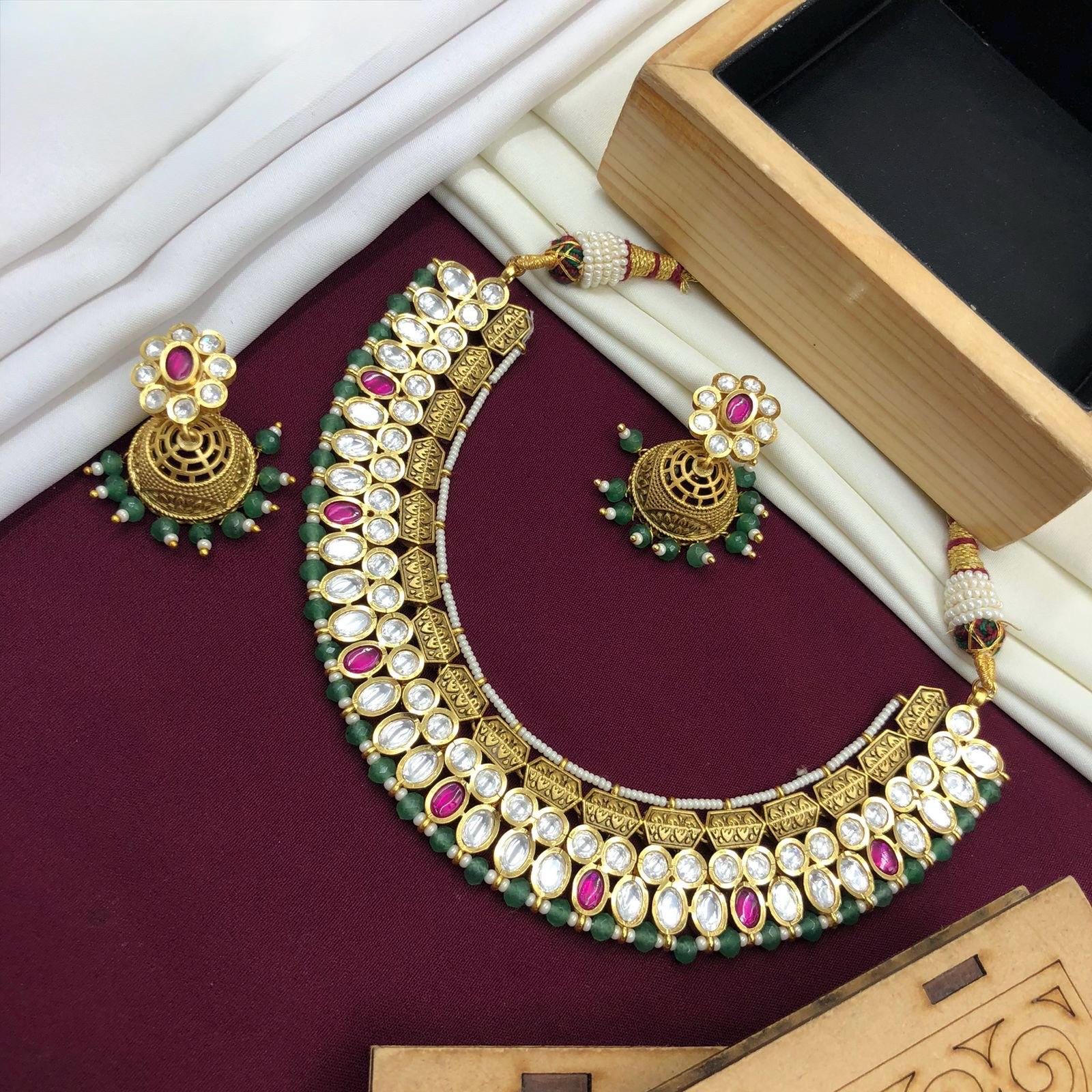 Note: This jewelry has high-quality pachi kundan stones. kindly do not compare this with cheaper quality products. Our pricing is very reasonable compared to the quality