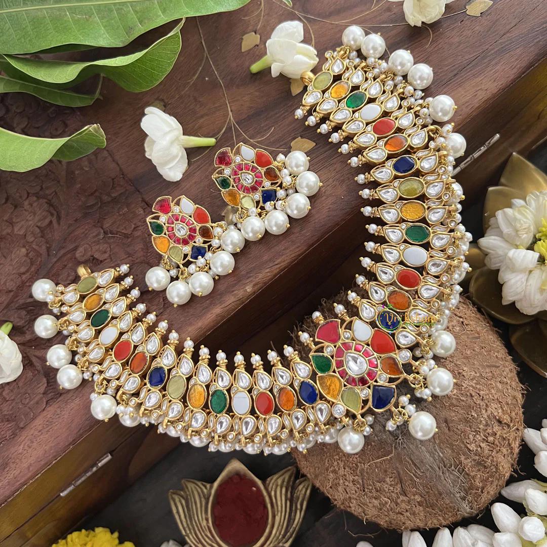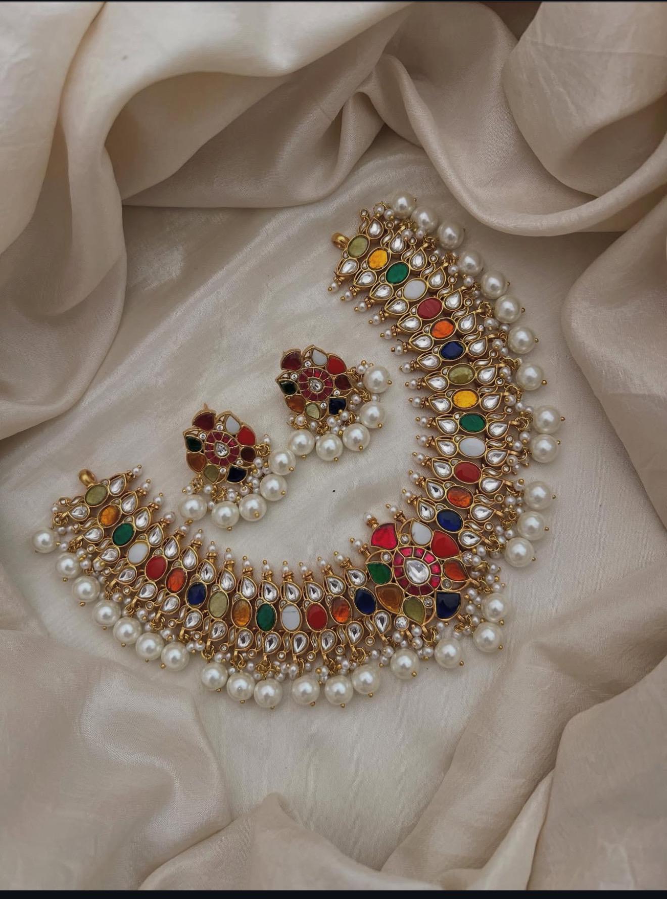 A beautiful set Real Royal Semi precious Navratan Necklace Set | Made with High-quality semi-precious stones / wedding Collection